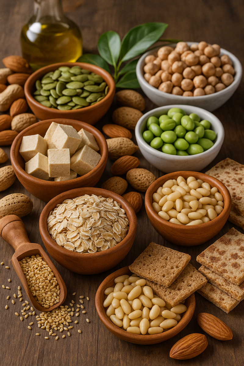 - Ořechy a semena – lískové ořechy, mandle, pistácie, sezamová a dýňová semínka